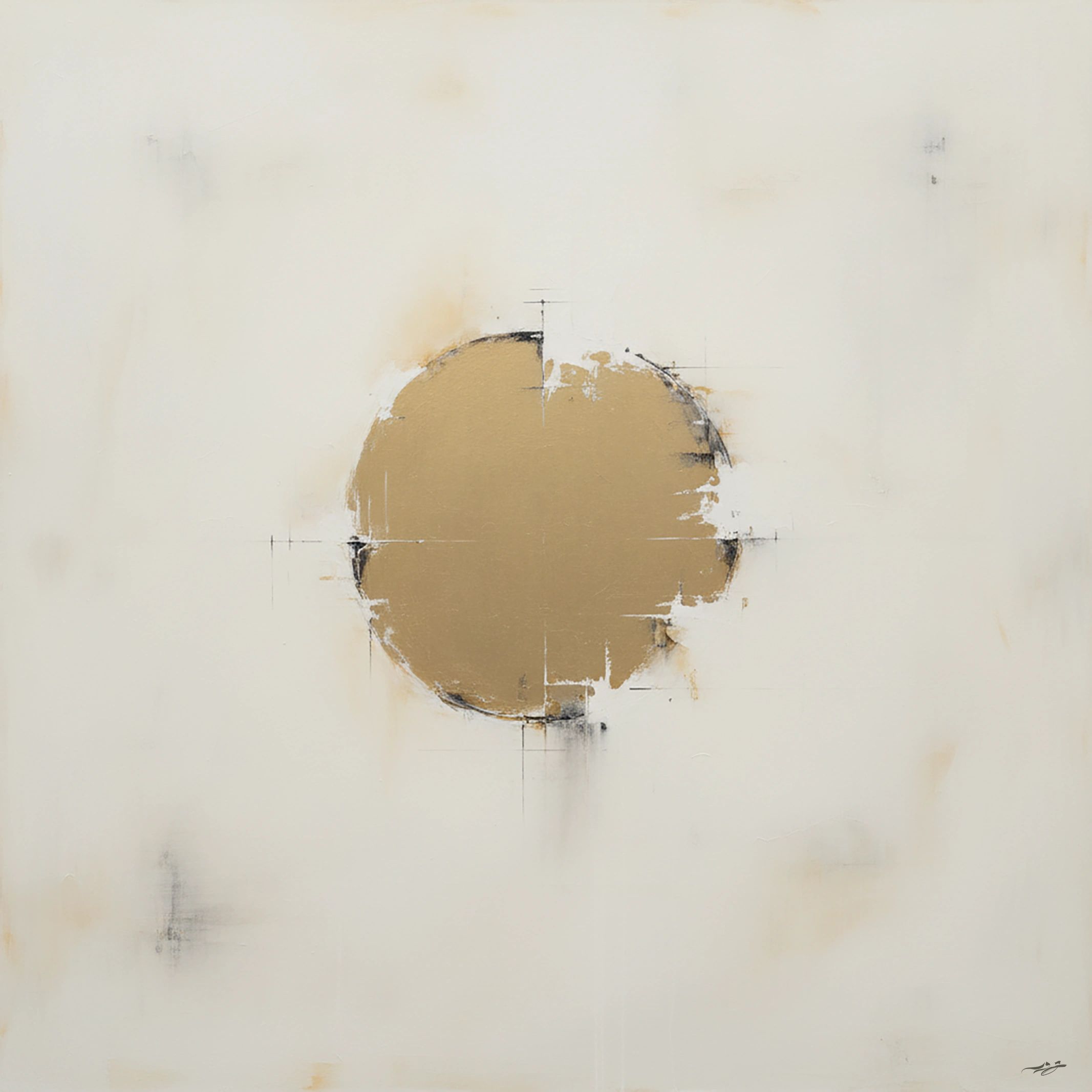 The Moment Before Form inhabits the charged interval where matter, identity, and intention have not yet committed to shape. The work suspends the viewer inside a field of restraint and tension, where an imperfect form hovers between emergence and erasure, resisting completion as an act of meaning. Subtle fractures, rubbed surfaces, and architectural traces suggest structure without authority, order without resolution an image of becoming rather than being. Refusing narrative and spectacle, the painting asserts silence as its primary force, inviting prolonged contemplation instead of explanation. What remains is a disciplined equilibrium between presence and absence, a quiet threshold where form hesitates, and meaning exists only as potential, unfixed, unresolved, and deliberately withheld.